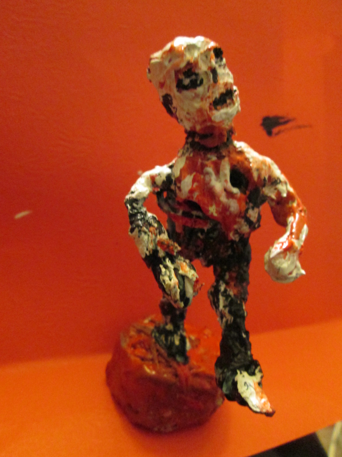 LEGION OF UNDEATH # 51 Zombie Sculpture 5" mixed media wire, cloth, paint, and the base is made from a paint tube cap.